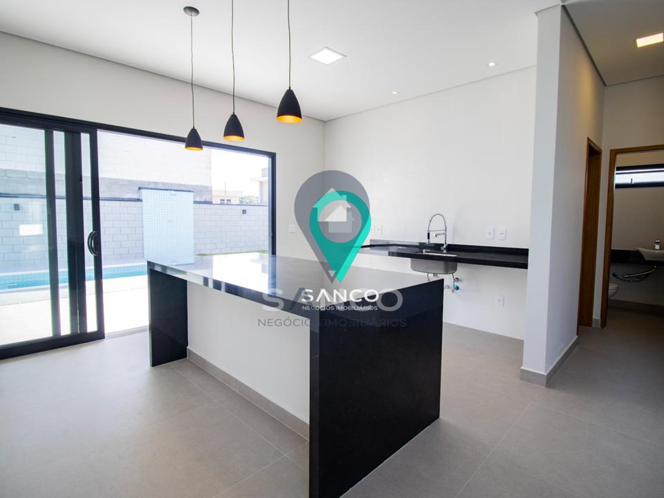 - Belíssimo imóvel, moderno em conceito aberto, com 3 dormitórios, sendo 1 suíte com closet e escritório, possui 3 banheiros e 1 lavabo, todos com bancadas de granito, sala para 2 ambientes com pé direito alto, integrada com a cozinha e espaço gourmet, cozinha com ilha, lavanderia com bancada de granito, piscina com quintal e corredores nas duas laterais, 4 vagas de garagem, sendo 2 cobertas.
