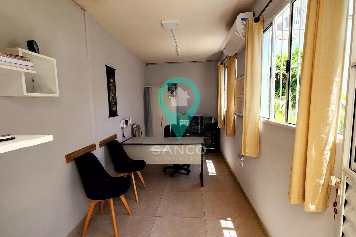 O imóvel conta com 243 metros de área construída. Casa principal com 04 salas amplas, 02 no piso superior com varanda e mais 01 sala de espera. Na parte inferior, 02 salas, cozinha, área de serviços, 01 salas de aula, recepção e uma sala na entrada. Quintal grande com vagas para 04 carros descobertas.