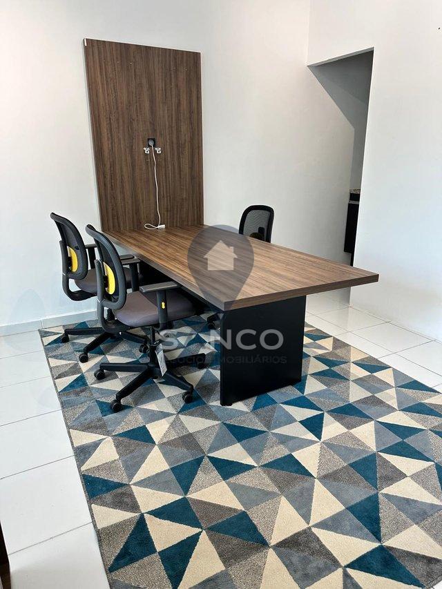 O imóvel conta com 40m² frigo bar, microondas, filtro de água, mesa de reunião, painel, 04 cadeiras, mesa presidente com gaveteiro + 01 cadeira diretor, cômoda + painel de vidro, ar condicionado, persianas, iluminação trilho LED.