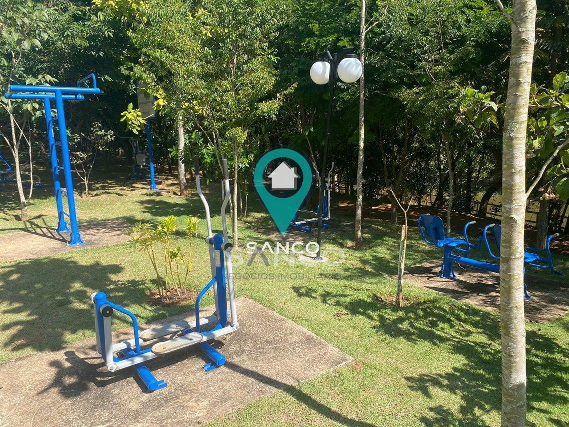 Condomínio com quadra de futebol, playground, salão de festas, lago, mercado auto-atendimento, portaria 24 horas.