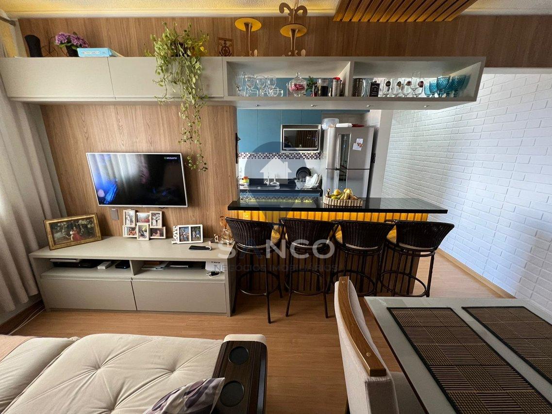 O apartamento semi-mobiliado conta com 54m², distribuídos em 02 dormitórios (sendo um com armário planejado), WC social, Cozinha americana planejada, área de serviço, 01 vaga de garagem.