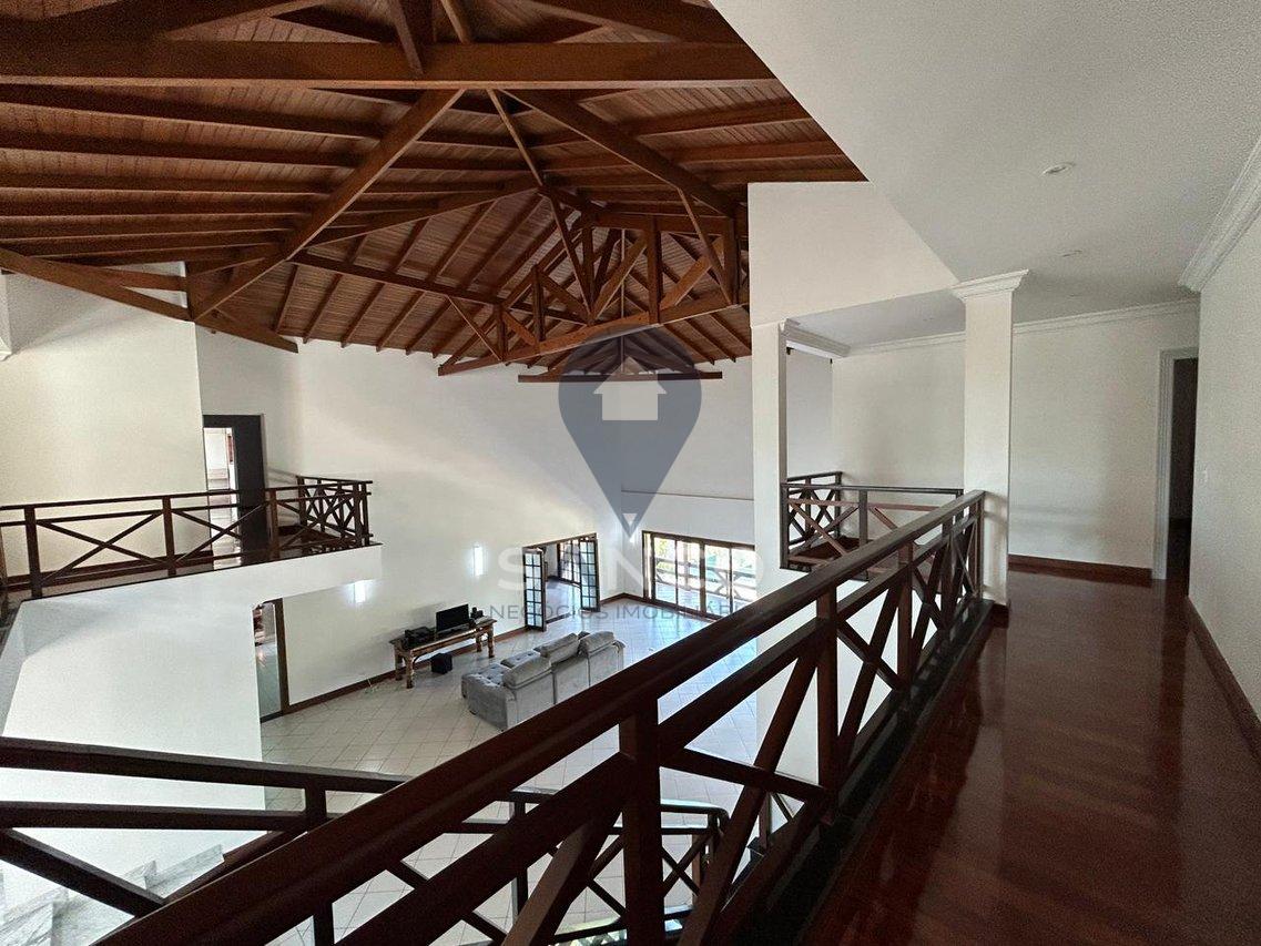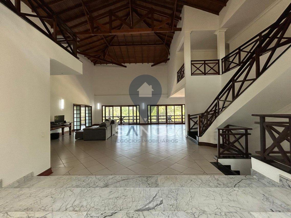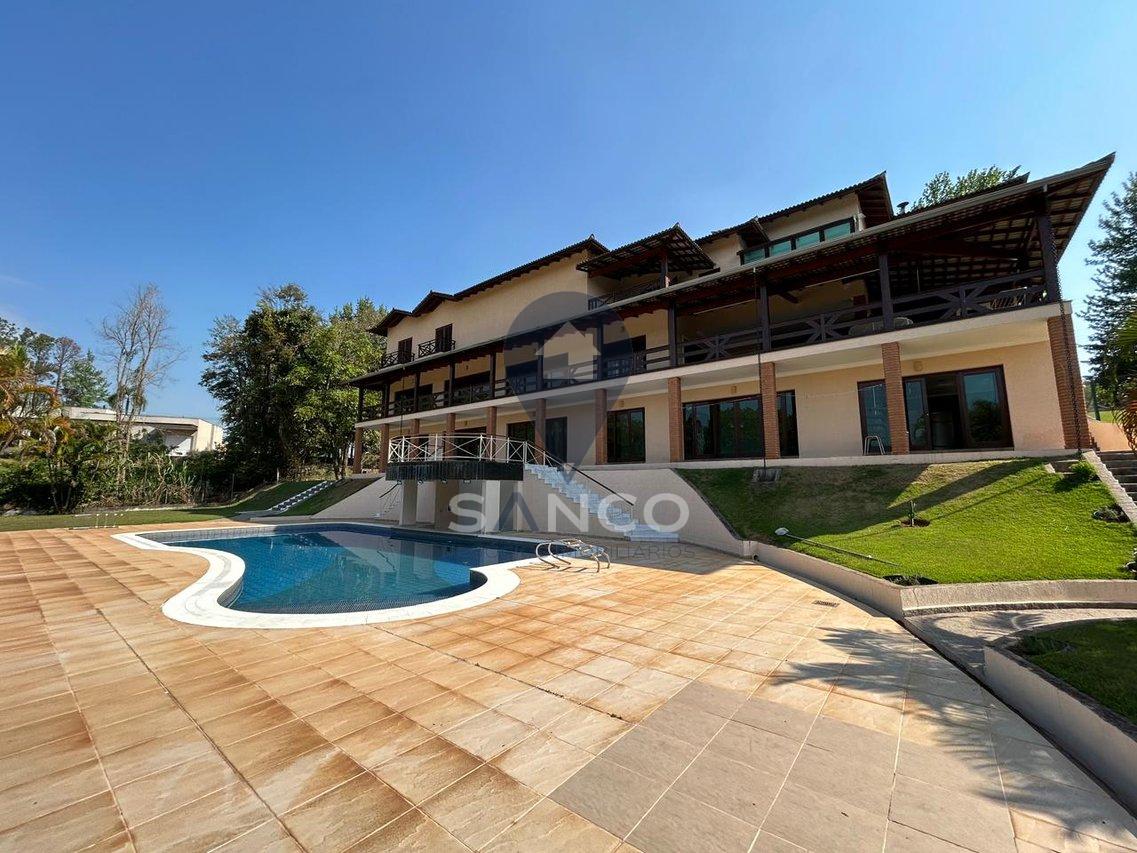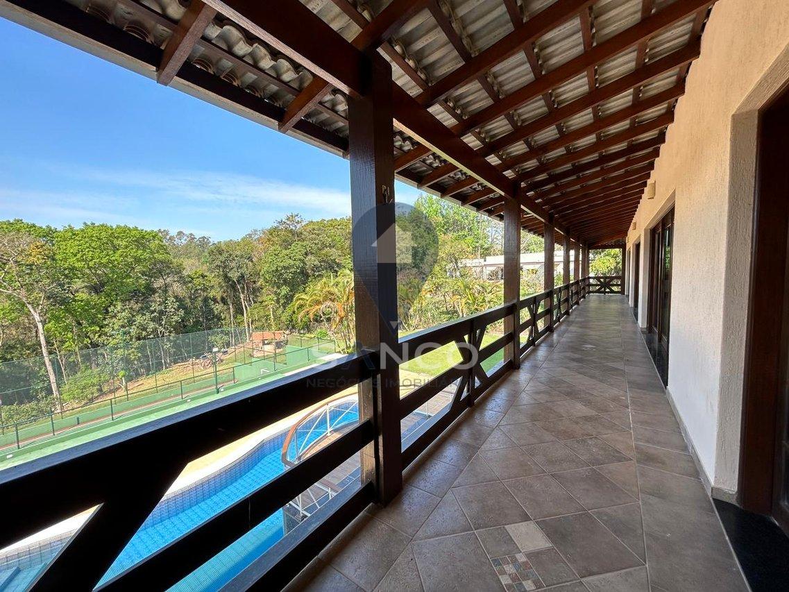 O imóvel conta com 5.000m² de terreno com área de preservação, e uma área construída de 1.174m², sendo distribuídos em 06 suítes, incluindo 01 suíte master com closet e hidromassagem, uma sala com pé direito duplo que trás conforto, luxo e elegância para a entrada do imóvel, integrando a sala de estar e sala de lareira, cozinha com armários planejados, 04 banheiros sociais, escritório, área gourmet com uma vista deslumbrante com churrasqueira e forno a lenha acompanhados de uma ampla varanda, o imóvel ainda possui um salão de festas privativo, salão de jogos, área p/ buffet, sauna, uma deslumbrante piscina de alvenaria, quadra poliesportiva, poço artesiano, além de tudo possui um pomar frutífero, tudo isso no quintal de casa. O imóvel também possui 12 vagas de garagem, sendo 02 vagas cobertas.