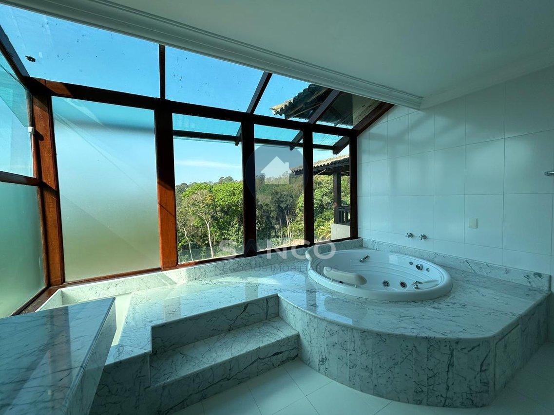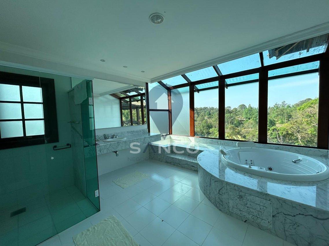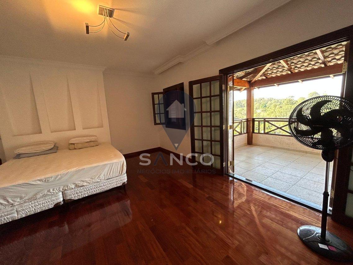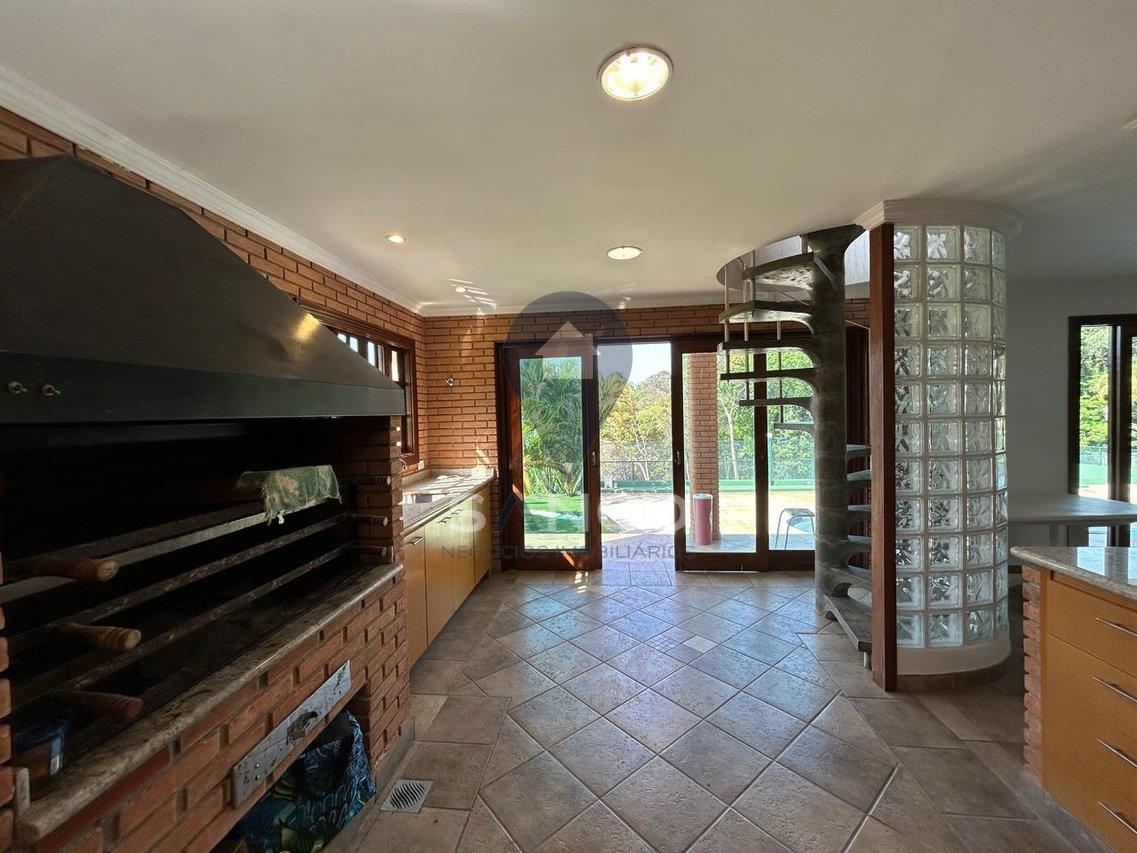 O imóvel conta com 5.000m² de terreno com área de preservação, e uma área construída de 1.174m², sendo distribuídos em 06 suítes, incluindo 01 suíte master com closet e hidromassagem, uma sala com pé direito duplo que trás conforto, luxo e elegância para a entrada do imóvel, integrando a sala de estar e sala de lareira, cozinha com armários planejados, 04 banheiros sociais, escritório, área gourmet com uma vista deslumbrante com churrasqueira e forno a lenha acompanhados de uma ampla varanda, o imóvel ainda possui um salão de festas privativo, salão de jogos, área p/ buffet, sauna, uma deslumbrante piscina de alvenaria, quadra poliesportiva, poço artesiano, além de tudo possui um pomar frutífero, tudo isso no quintal de casa. O imóvel também possui 12 vagas de garagem, sendo 02 vagas cobertas.